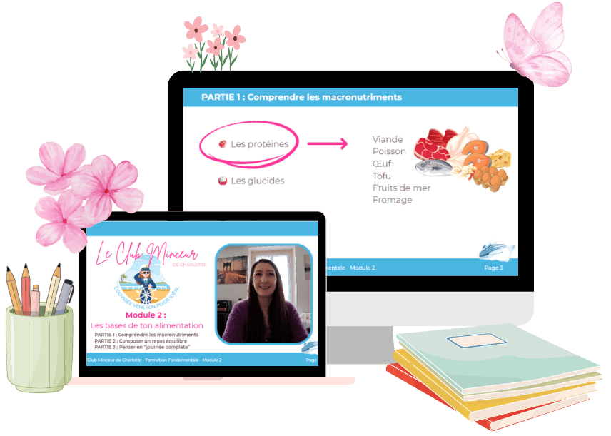 Dès ton arrivée, tu accèdes à une formation complète pour comprendre les bases de ton alimentation, savoir utiliser les menus et t’organiser simplement.